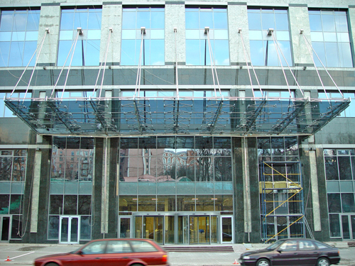 Обязательным условием по безопасности для конструкций, где предполагается прохождение большого потока людей, является применение закаленного стекла (8-10 мм). Если закалённое стекло вдруг разобьётся, то режущих осколков не образуется, поэтому опасности травмы не возникает.