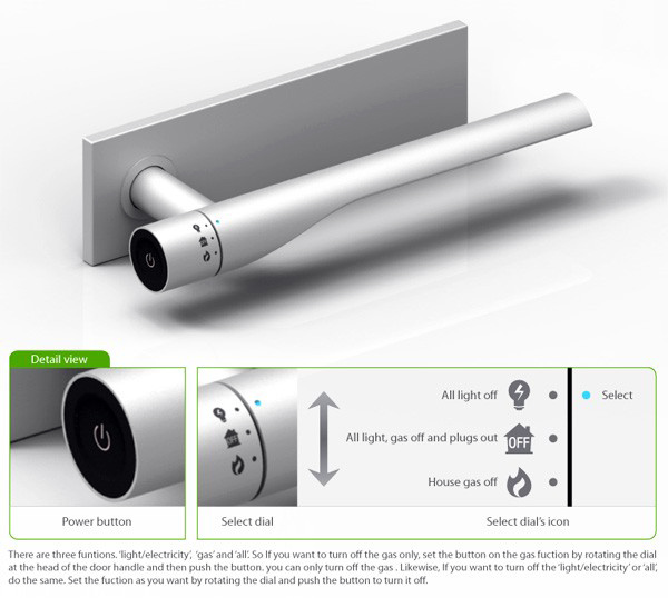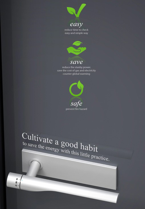 Концепция дверной ручки "OFF" от группы азиатских дизайнеров позволит больше не волноваться о забытом включенном утюге или о том, что дети, выходя из дома, не погасят свет. По идее автора, ручка "OFF", установленная на входной двери, не только напомнит о необходимости что-то выключить, но и сделает это самостоятельно.