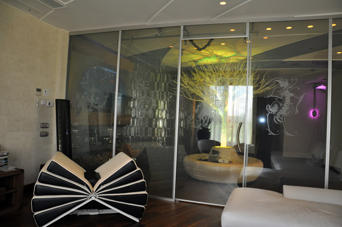 Панели смарт-стекла, изготовленные с применением специальной звукопоглощающей пленки PVB, используются для акустического зонирования помещений различного назначения.