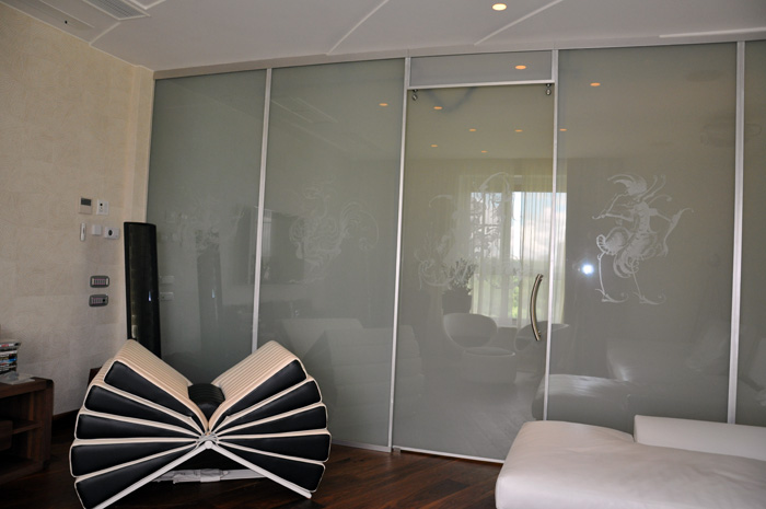 Эта технология используется для внутренних и внешних установок для контроля приватности (например, переговорных комнат, медицинских комнат интенсивной терапии, ванных комнат, душа) и для временного экрана для проектора.