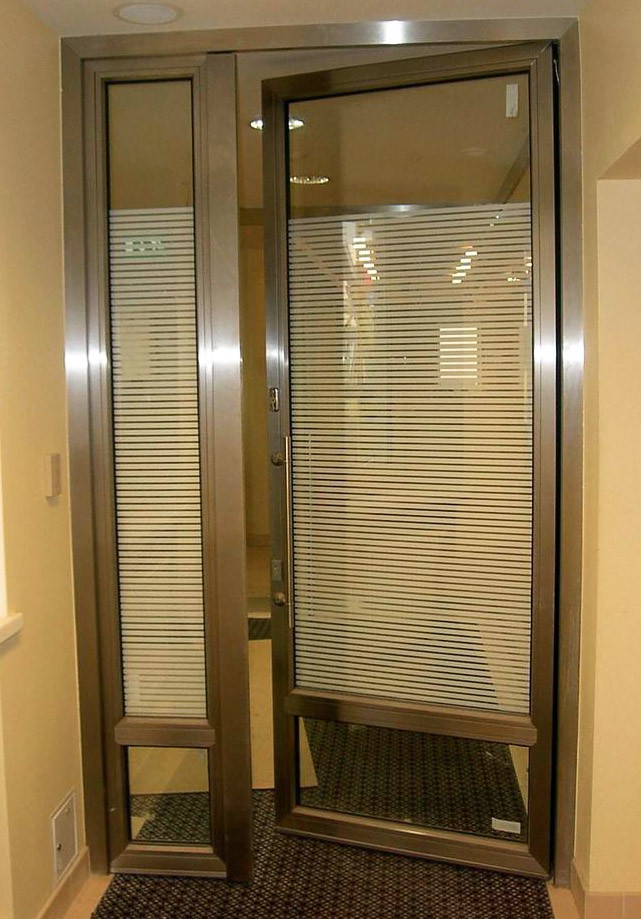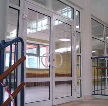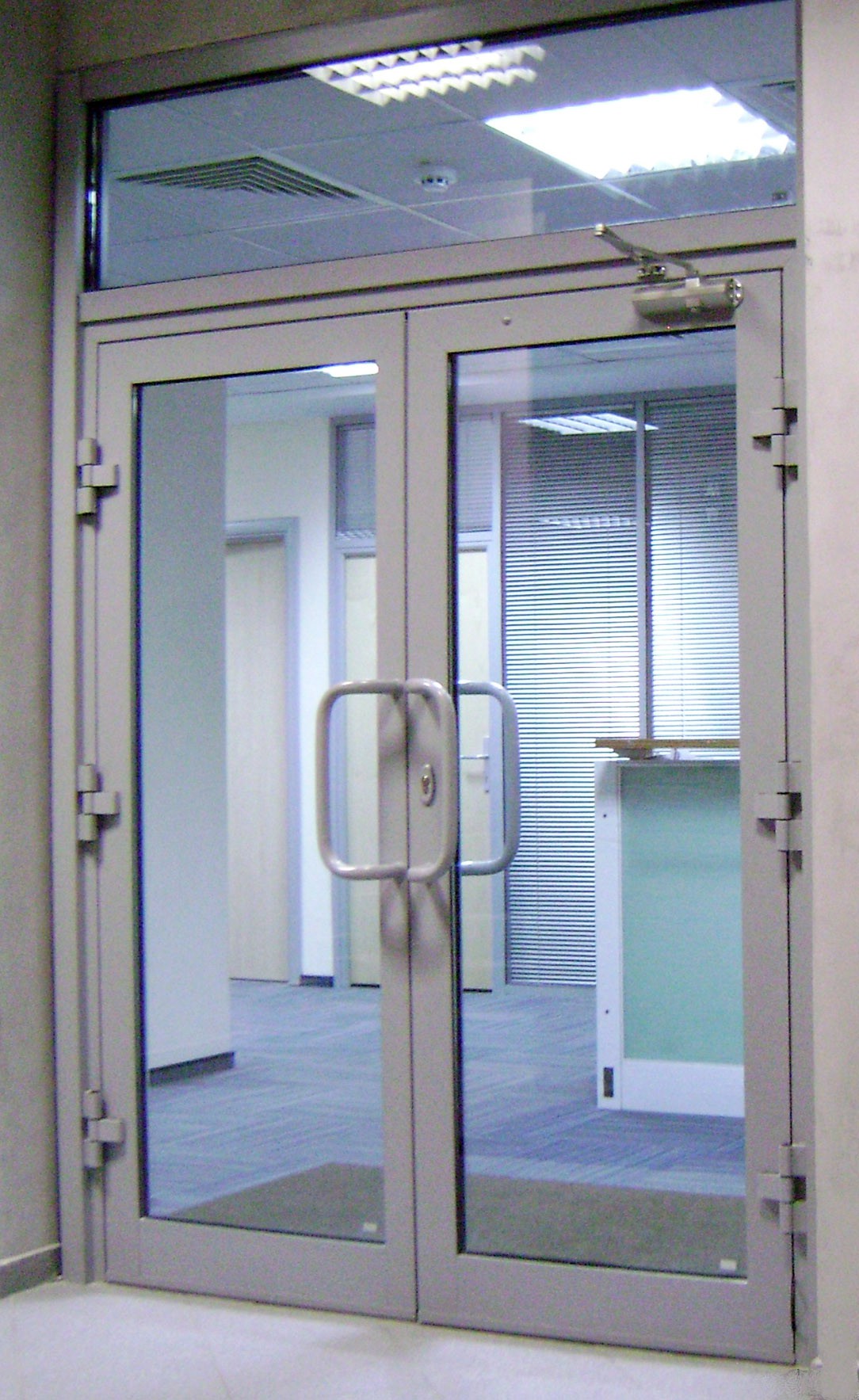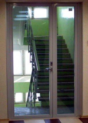 Cтеклянные огнестойкие двери являются надежной противопожарной защитой и успешно конкурируют на этом рынке с металлическими и деревянными дверьми. В них используется огнестойкое стекло, созданное по специальным технологиям. Дверное полотно полностью прозрачно, остекление составляет до 95% и состоит из рамы сваренных между собой стальных профилей, в которую вставляется многослойное огнестойкое стекло.
