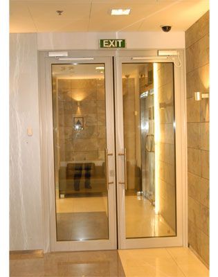 Чтобы противопожарная дверь не превратилась в ловушку она не должна иметь замок, который нельзя было бы открыть без ключа изнутри. Для таких целей существует специальный механизм, называемый «антипаника». Кроме того, все противопожарные двери оснащаются доводчиком или иным приспособлением для самозакрывания и уплотнения в притворах, являясь дополнительной защитой от дыма и распространения огня. Ширина противопожарной стеклянной двери должна быть такой, чтобы через неё можно было беспрепятственно пронести носилки с лежащим на них