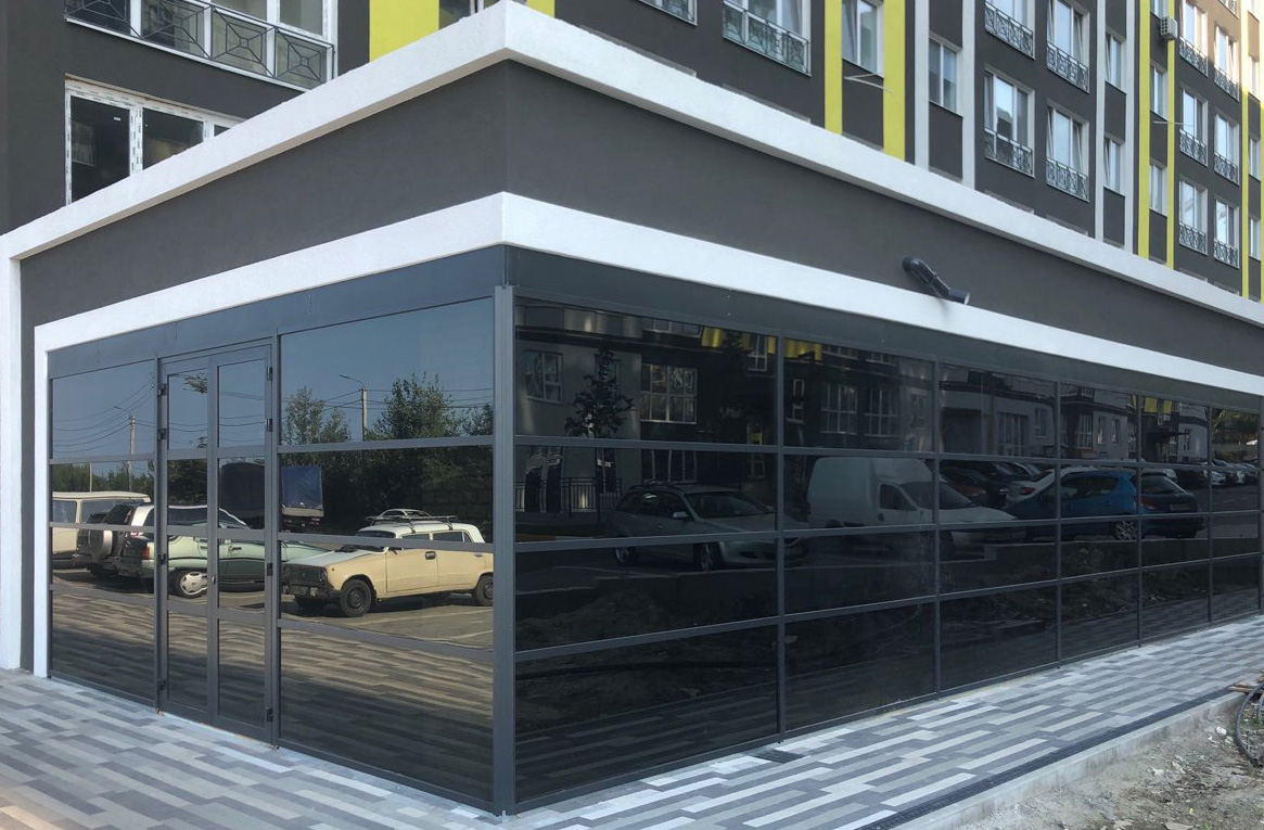 Торговый центр "Вега", г. Белая Церковь_Стеклянные перегородки, витрины, козырёк