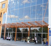 Офисный центр "Кряж", г. Винница_Стеклянные перегородки, в т.ч. моллированные, козырёк