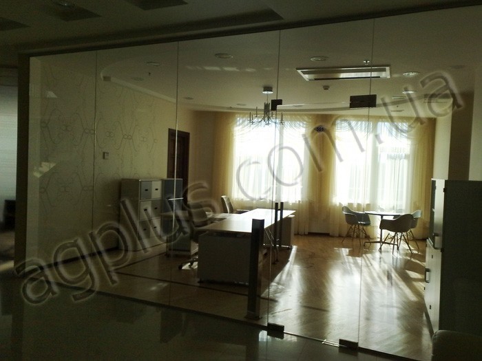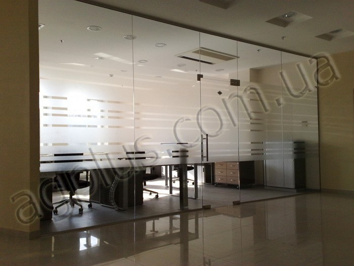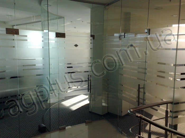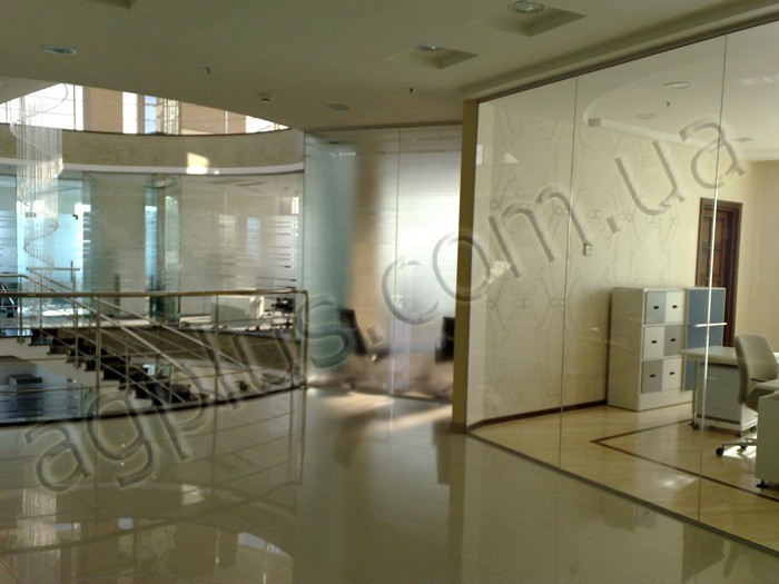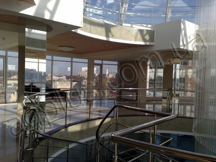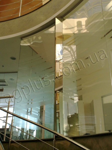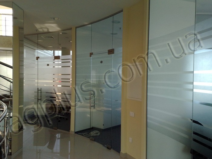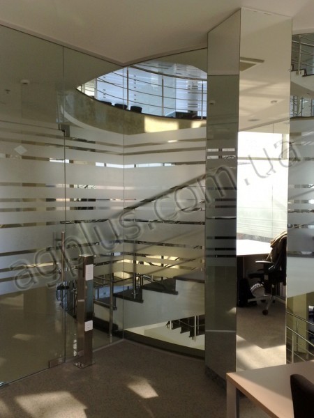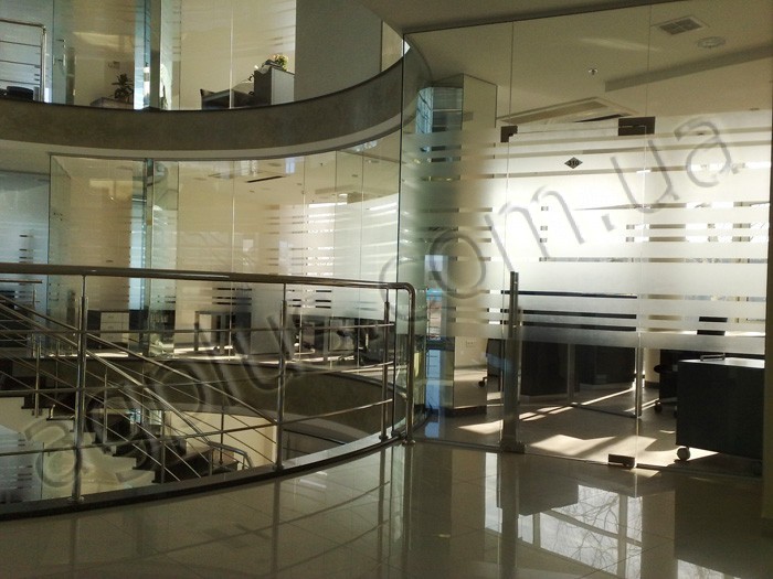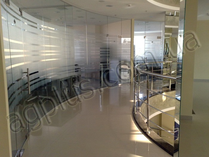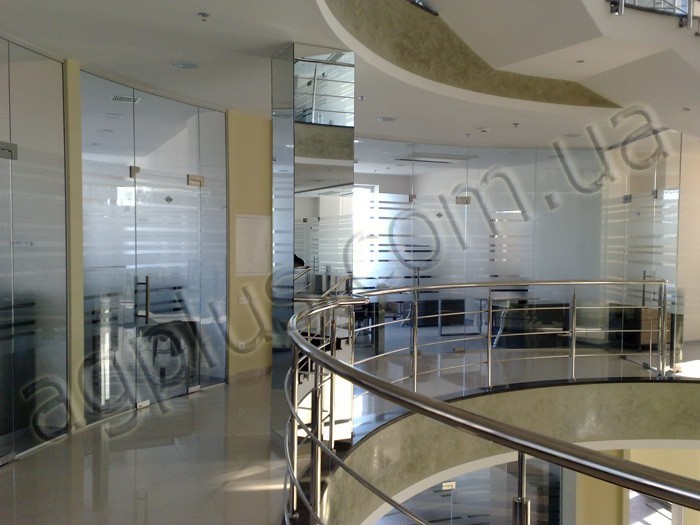 Офисный центр "Кряж", г. Винница_Стеклянные перегородки, в т.ч. моллированные, козырёк