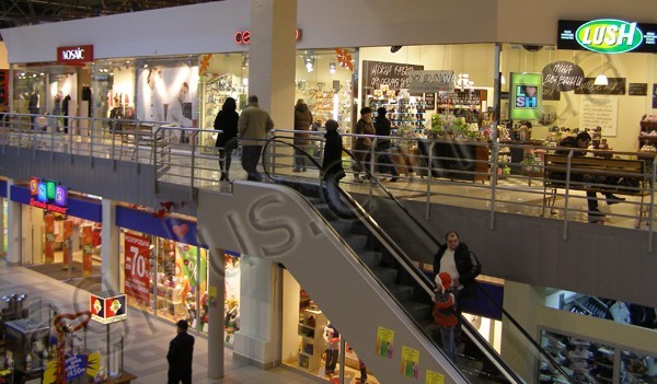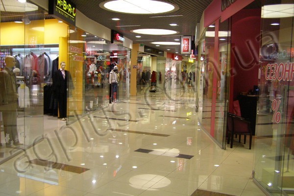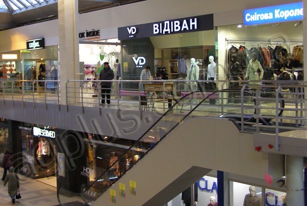 ТЦ "Пирамида", г. Киев_Стеклянные перегородки с дверьми, ограждение эскалатора
