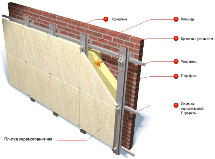 Усі елементи каркасу називають підсистемою. Матеріалом для каркасу можуть бути алюмінієві сплави, нержавіюча та оцинкована сталь. Лицьовий шар з несучою стіною з'єднують кронштейни, що є основними елементами в облаштуванні каркасу. Кронштейн захищає від впливу агресивного середовища матеріалу стінок паронітова підкладка.