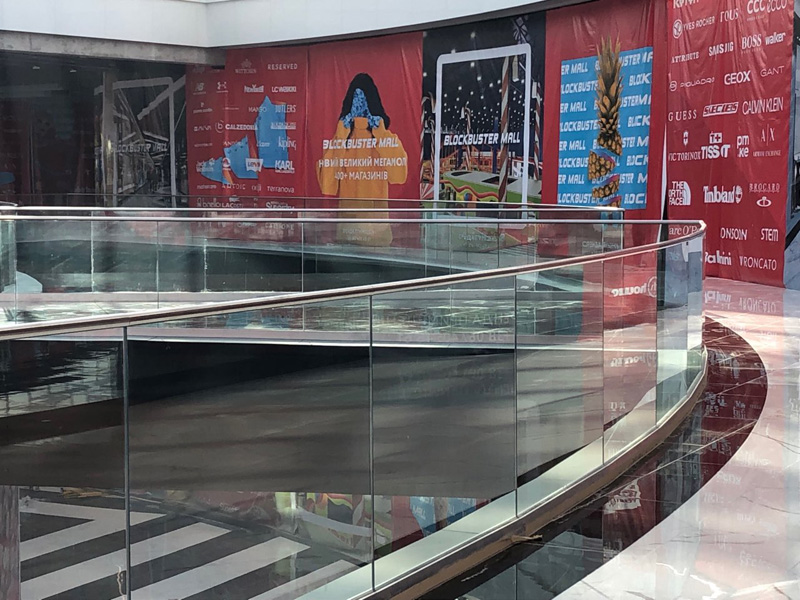 Вот так выглядят изготовленное и установленное нашей КОМПАНИЕЙ АГ-ПЛЮС стеклянное ограждение в торговом центре "Блокбастер-2" на проспекте С.Бандеры, 36.
