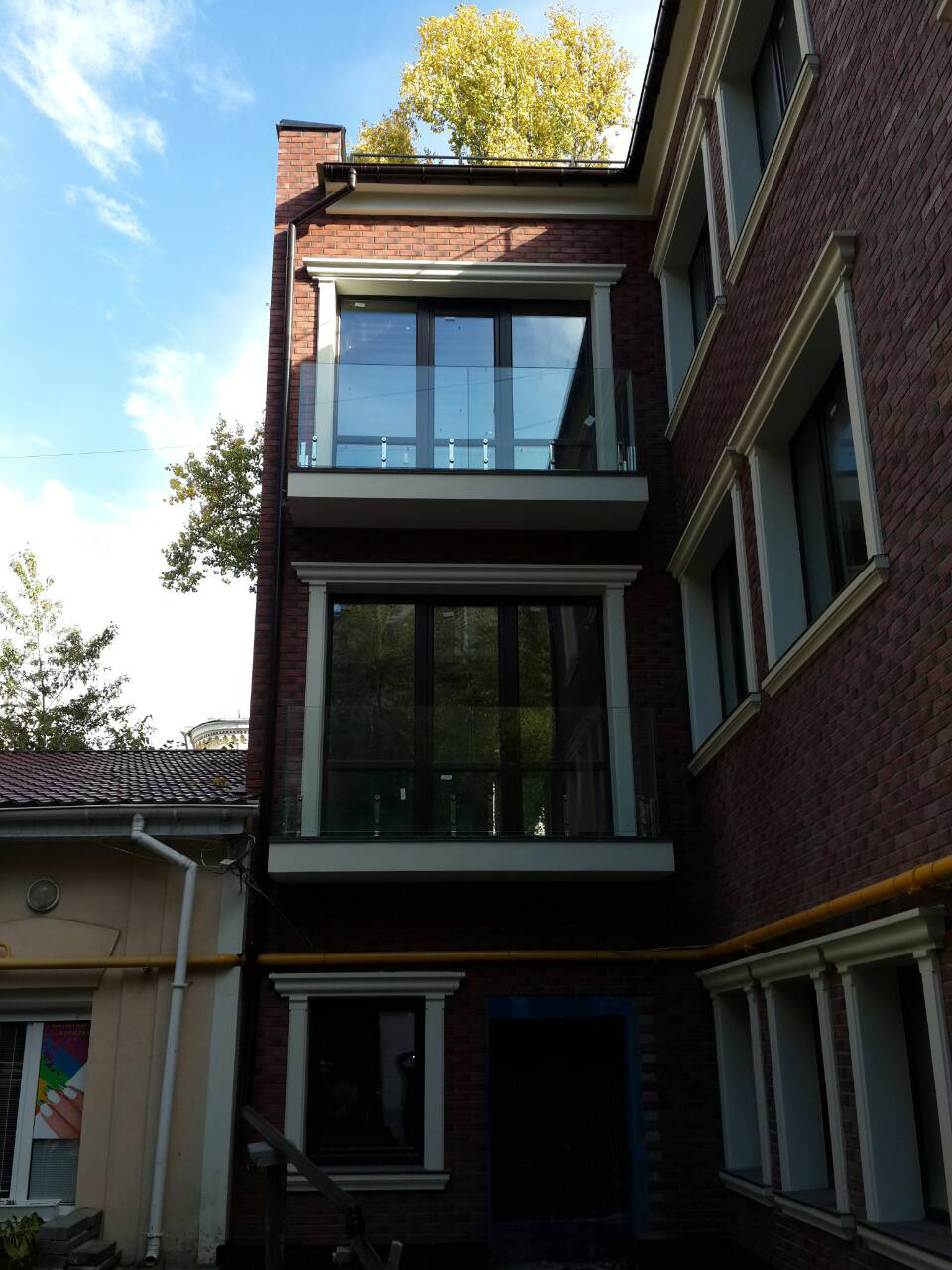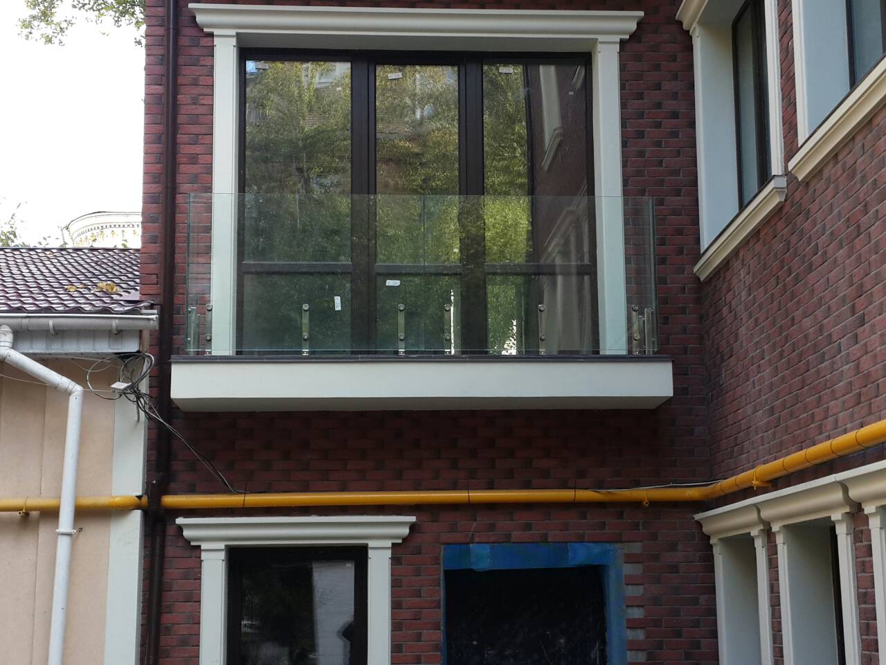Ограждение балкона на ул. Антоновича в г. Киеве: стекло триплекс 8+8 мм, стойки - нержавейка.