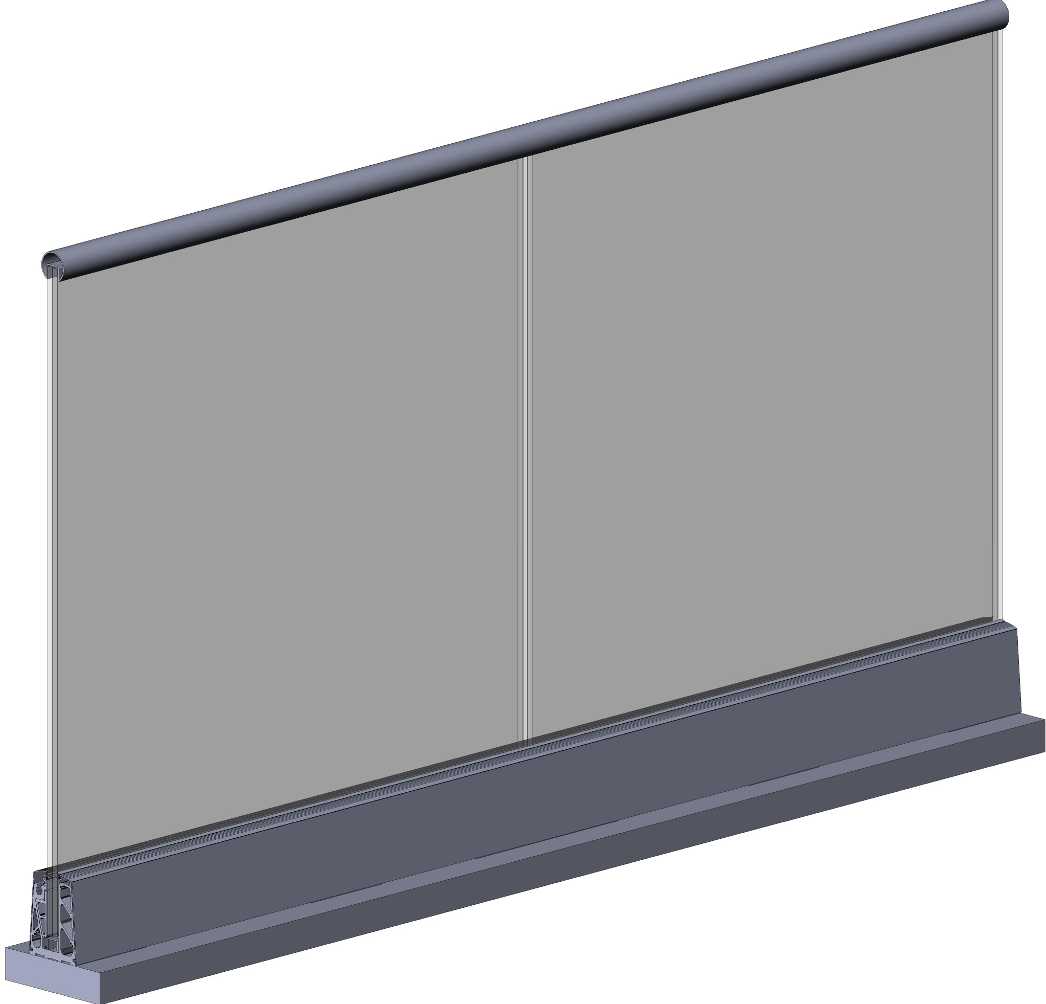 В стеклянных ограждениях используется закалённый триплекс 10+10 и зажимной профиль, поручень - нерж. сталь.