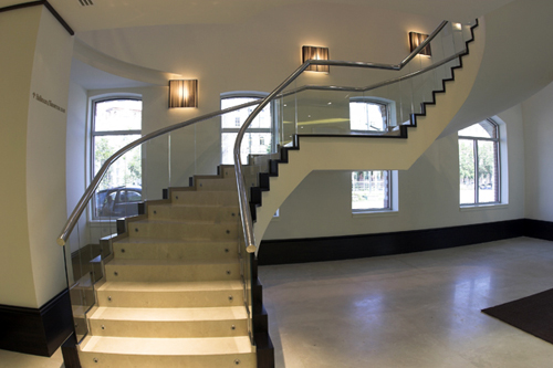 стеклянные ограждения (атриумы, лестничные марши, лифты)