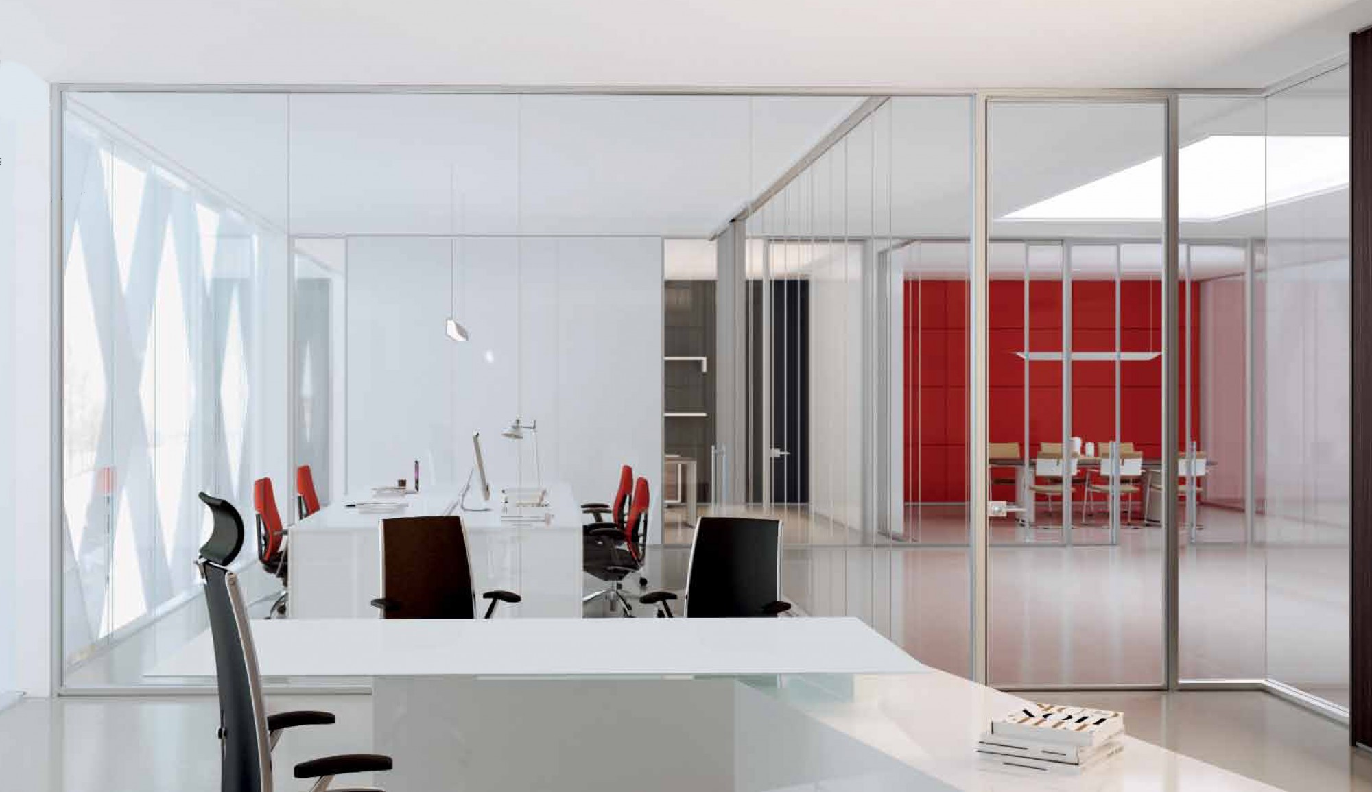 Остекление может быть одинарным или двойным.В офисных стеклянных перегородках используется только закалённое стекло толщиной 8-10 мм или триплекс 6+6, 8+8.