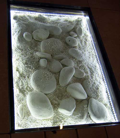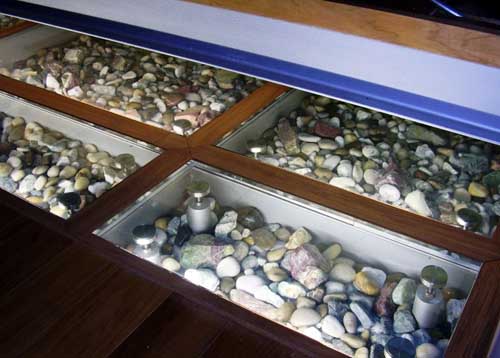 Стеклянные фрагменты пола монтируются на несущие конструкции с помощью особых кронштейнов, выполненных из нержавеющей стали, вмонтированных в нужные фрагменты с помощью полимерного клея.