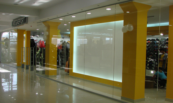 Сейчас, в эпоху развития крупных торговых центров, появилась новая модель витрины-стеклянные перегородки, совмещающие в себе двойную функцию: представительскую и ограждающую.