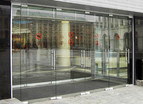Центральной частью всех стеклянных входных групп являются стеклянные двери. Выбор типа и конструкции дверей, в основном, определяется необходимой пропускной способностью. Поэтому есть два основных типа дверей для входных групп: с ручным открыванием и автоматические.